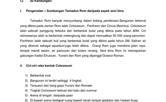 A tajuk rencana reka bentuk seni bina colosseum pada zaman tamadun rom yang menjadi asas kepada idea pembinaan stadium di. SEJARAH TINGKATAN 1 A Tajuk Rencana Reka bentuk seni bina Colosseum pada zaman Tamadun Rom yang menjadi asas kepada idea pembinaan stadium di Malaysia pada hari iniB Nama Penulis C Isi Kandungan.